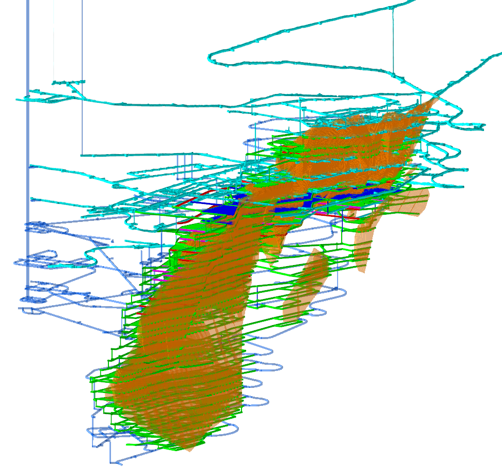 визуализация подземных горных выработок в 3D, для определения оптимального места их заложения;