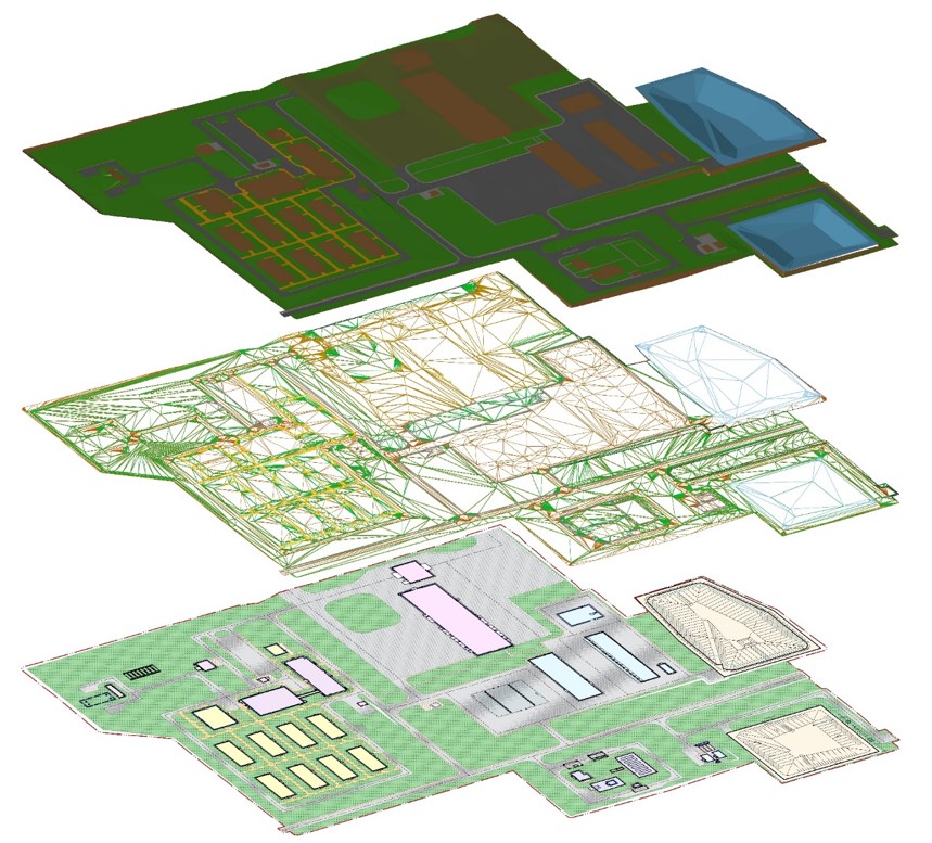 Разработка генеральных планов промышленных предприятий (металлургические, обогатительные, площадки поверхностных комплексов открытых и подземных горных работ), объектов жилищно-гражданского назначения.