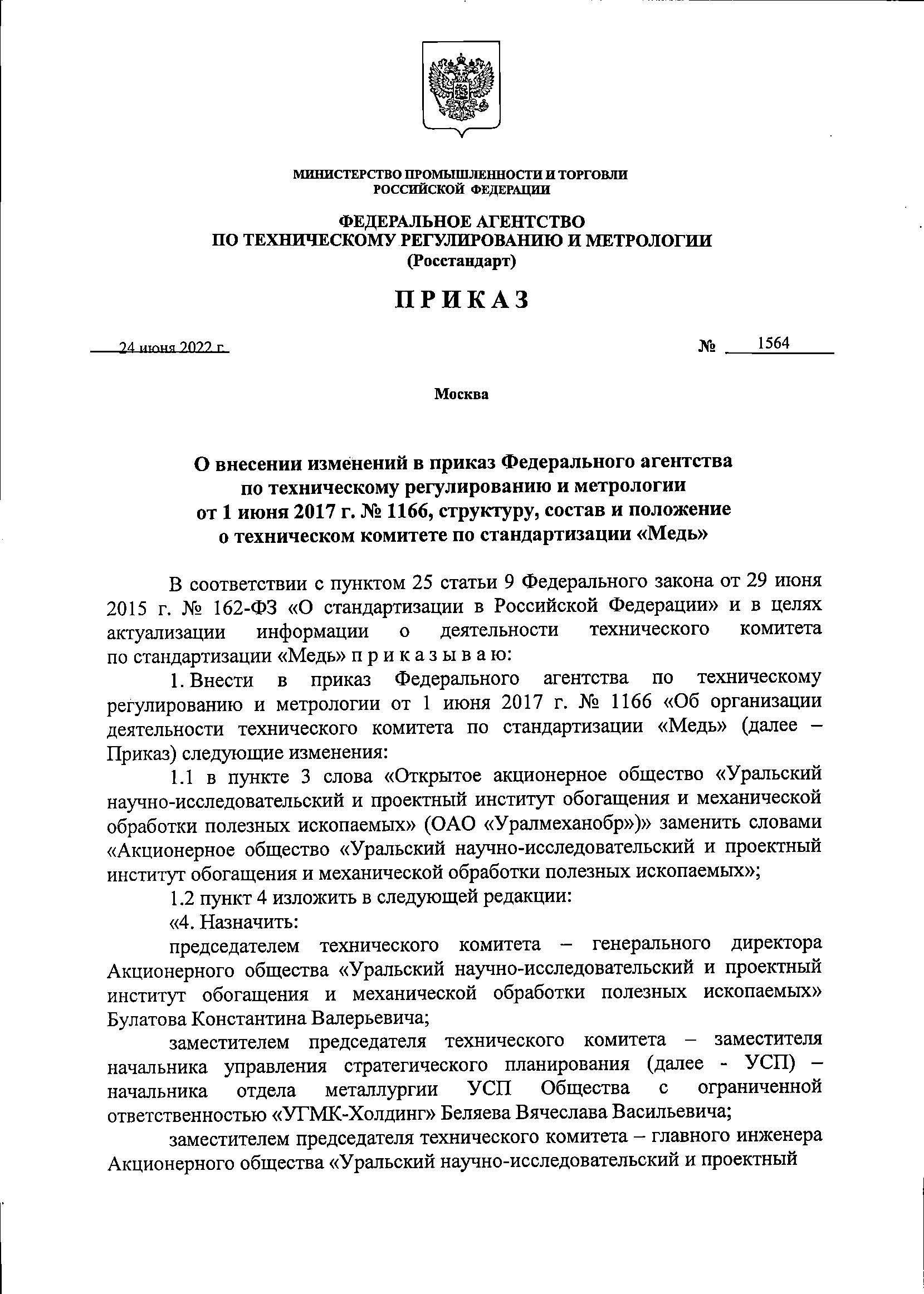 На базе АО «Уралмеханобр» создан и активно функционирует технический комитет по стандартизации ТК 368 «Медь», который актуализирован Приказом Федерального агентства по техническому регулированию и метрологии № 1564 от 24.06.2022.